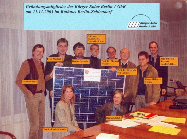 - Betreibergesellschaft: „Bürger-Solar Berlin 1 GbR“, Gründungsdatum 11.11.2003.