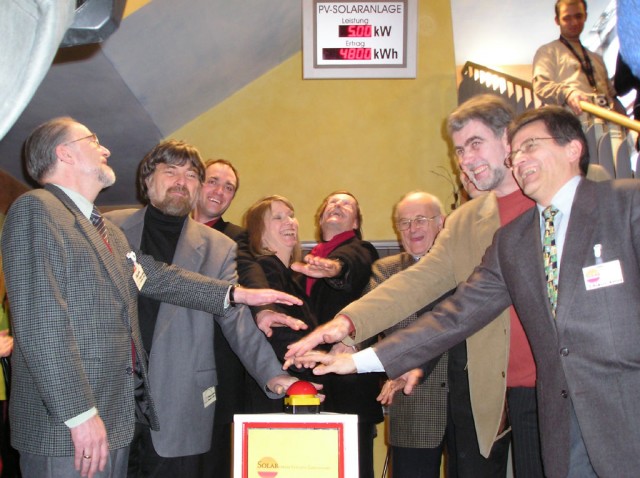 - Einweihungsfeier: in der Solar-Gesamtschule mit ca 40 Teilnehmern. Während der Einweihungsveranstaltung erklären mehrere Teilnehmer, in ihren Wohnorten Bürger-Solaranlagen initiieren zu wollen.