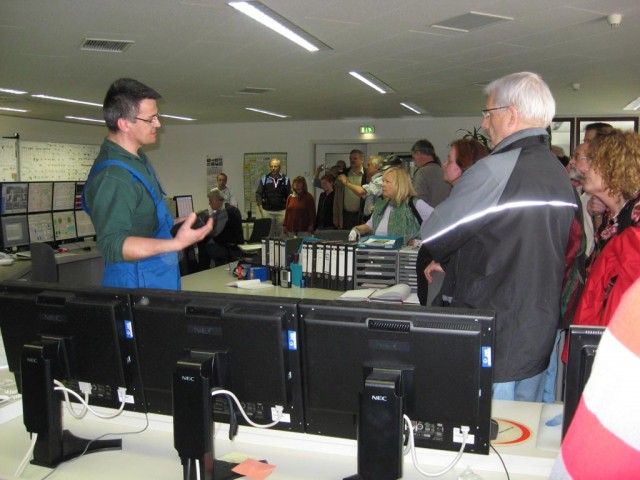 Es folgte eine Kurzvisite des Hackschnitzelheizwerkes vom DOM-Komplex. Weiter ging die Fahrt vorbei an der 1. Bürgersolaranlage und zum Heizkraftwerk (KWK) der Städtischen Werke. Dort gab es eine Besichtigung mit fachlicher Begleitung sowie einen kleine Imbiss.